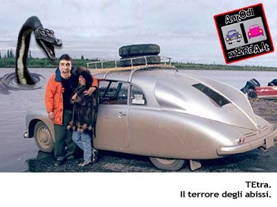 La Tatra T87 fu una macchina mutante dotata di tre occhi e pinna anale frutto dell’azienda ceca, di nome e di fatto, Tatra (da non confondersi con la TetraPak®, seppur affine per quanto riguarda il riciclaggio differenziato). Fu fondata nel 1850 come Nesselsdorfer Wagenbau-Fabriksgesellschaft ma dal 1919 cambiò denominazione nella più semplice Tatra anche perché sovente il logo del marchio montato sulle auto fuoriusciva dalla carrozzeria invadendo la corsia opposta. E’ il terzo produttore automobilistico più antico nel mondo dopo Mercedes e Peugeot. Nel 1999 ha cessato la produzione di auto continuando la linea storica di camion, autocarri, carrozze, tram e spalamerda. La T87 (1936-1950) era alimentata da un motore V8 posteriore da 2.9 lt. raffreddato ad aria che produceva 85 cv. offrendo punte massime di velocità di 160 km/h. La sua forma mostruosa fu progettata dal Dr. Hans Ledwinka, medico chirurgo appassionato di tessuti morti. Grazie al motore posteriore e all’assenza di una vetratura sul lunotto la Tatra T87 aveva una retro visibilità della minchia, in compenso aveva il faro marittimo anteriore centrale per segnalare ai naviganti la presenza di un cesso sulla terra ferma. Il vano motore era compreso nell’ intero segmento posteriore, apribile integralmente, mentre le portelle avevano un’ apertura opposta l’una all’altra. La T87 si colloca in un’ epoca storica in cui la Cecoslovacchia era all’ avanguardia nel campo tecnologico, non a caso fu una delle poche auto prodotte anche durante lo svolgersi del conflitto bellico in merito soprattutto agli elogi ricevuti dall’ ingegnere nazista Fritz Todt, responsabile all’ epoca della rete autostradale tedesca e dei paesi occupati durante il Regime. Paradossalmente fu proprio la T87, grazie a all’eccesivo peso del motore V8 che provocava lesioni alla coda della vettura, a far schiantare molti ufficiali nazisti. Proclamata in seguito come miglior auto partigiana dell’ anno. Il modello più piccolo della gamma, il